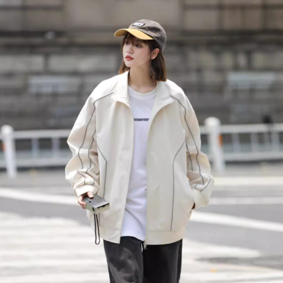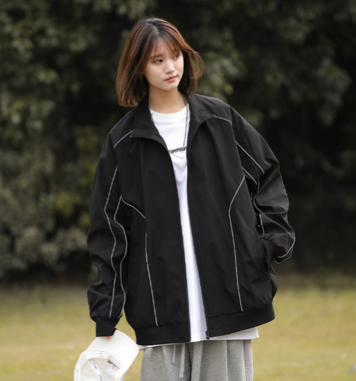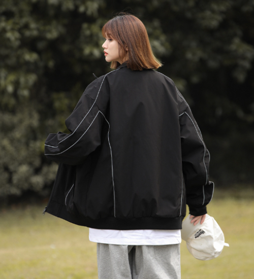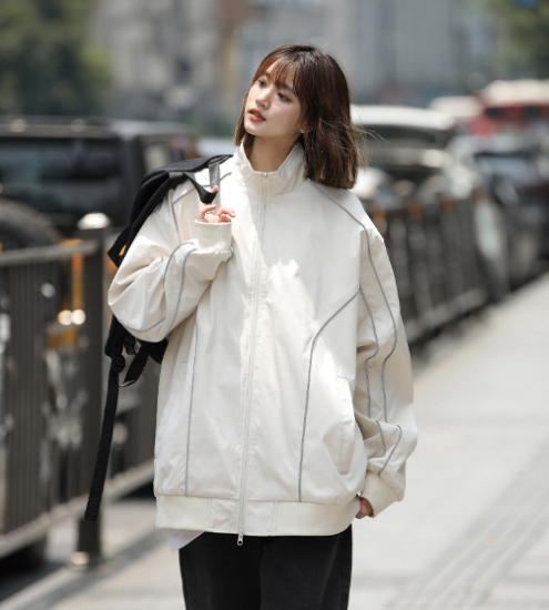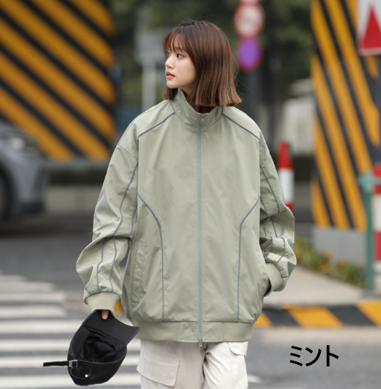 ジャケット レディース アウター 羽織 上着 ウインドブレーカー ブルゾン フロントジッパー スタンドカラー バイカラー ライン スポーティー カジュアル お出かけ おしゃれ 女性 ファッション