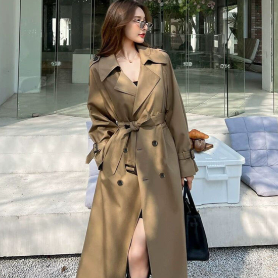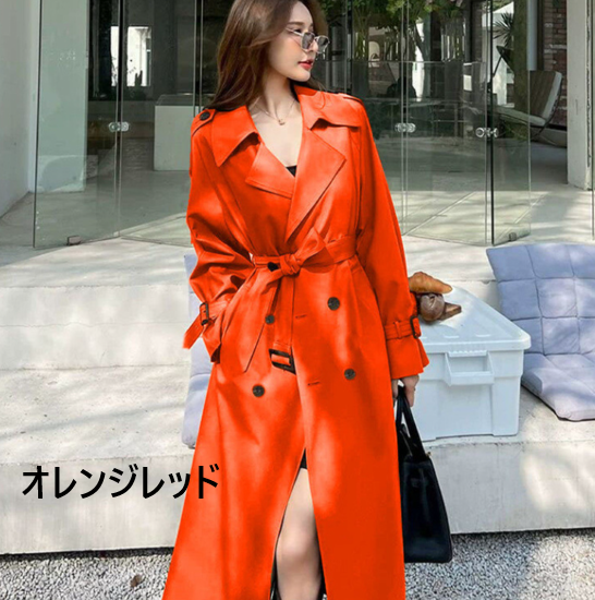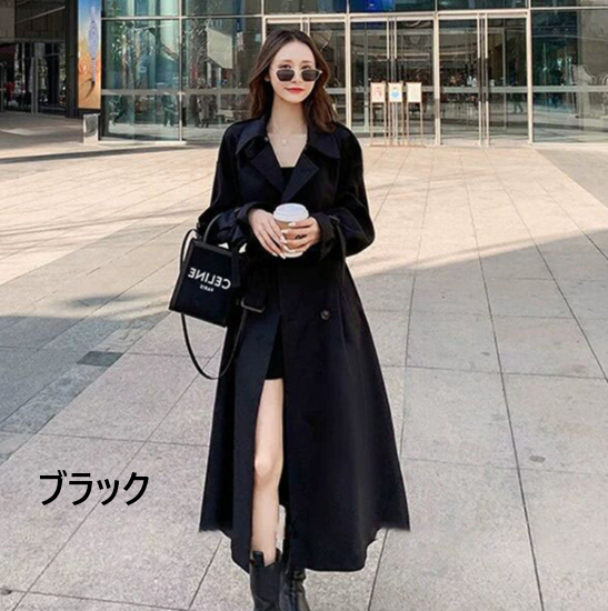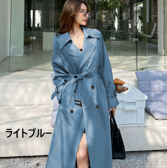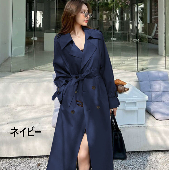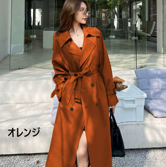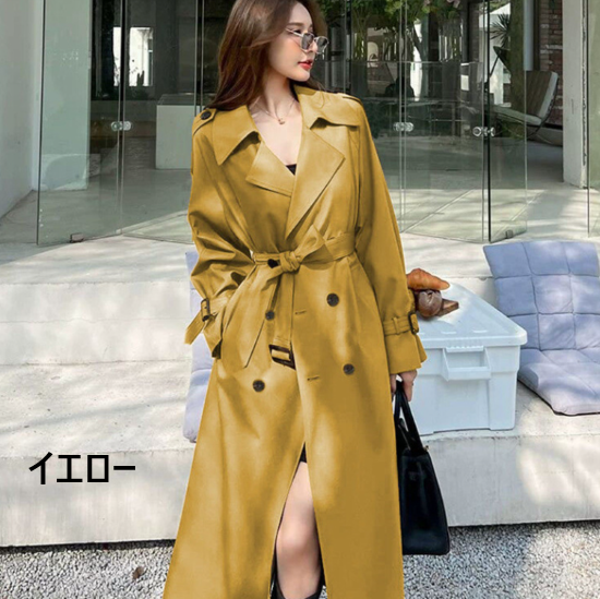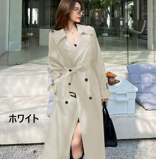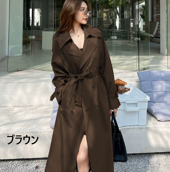 トレンチコート レディース アウター 羽織 上着 長袖 ロング丈 襟あり スーツ襟 ウエストベルト ダブルブレスト フロントボタン スタイリッシュ カジュアル お出かけ おしゃれ きれいめ 女性