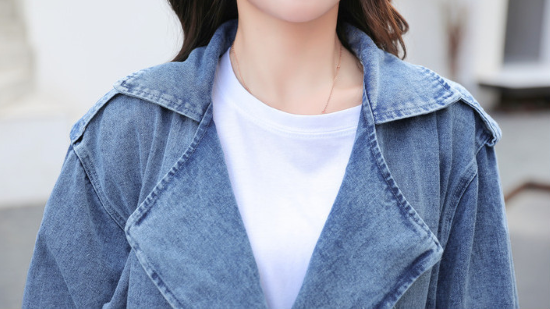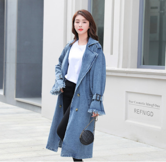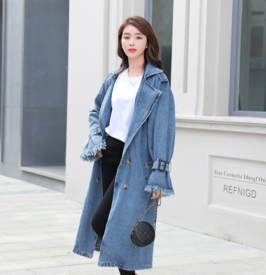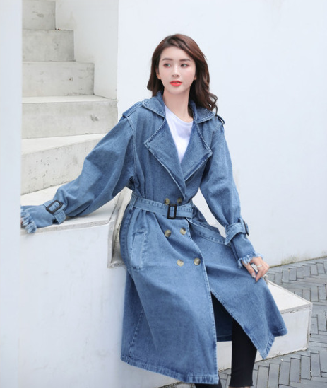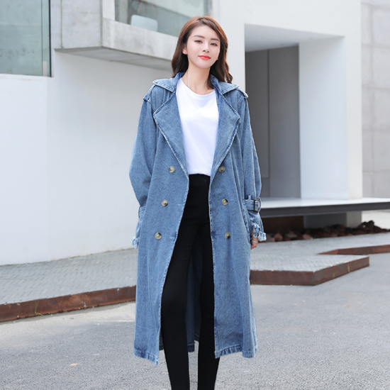 トレンチコート レディース アウター 羽織 上着 デニム 長袖 フロントボタン ダブルブレスト 襟あり スーツ襟 ウエストベルト スタイリッシュ カジュアル お出かけ おしゃれ きれいめ ファッション
