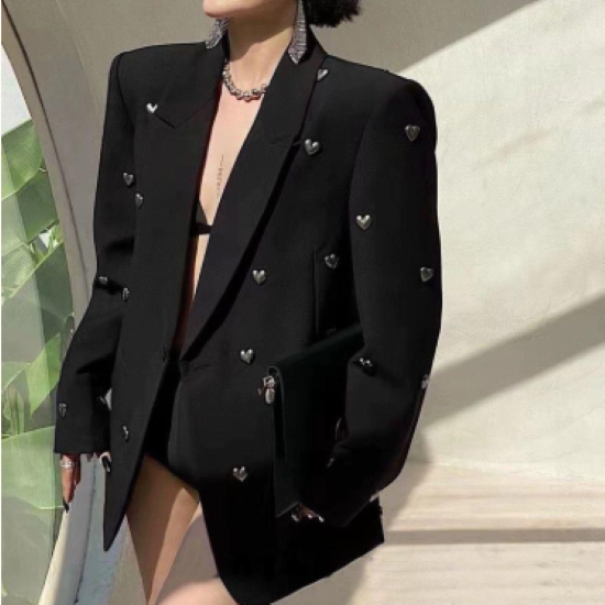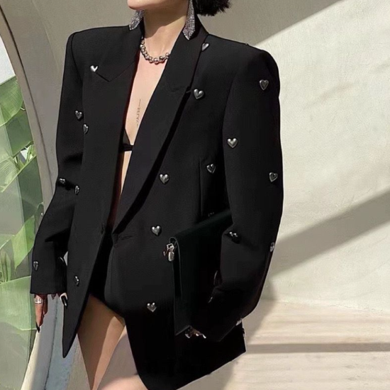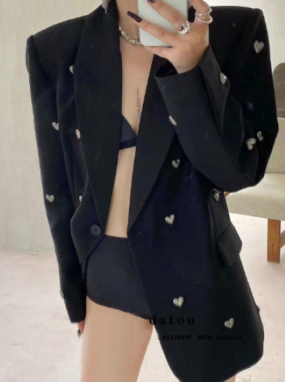 ジャケット レディース アウター 羽織 上着 長袖 スタイリッシュ ハート柄 キュート 襟あり クール かっこいい 黒 ブラック カジュアル お出かけ おしゃれ きれいめ スーツジャケット 女性