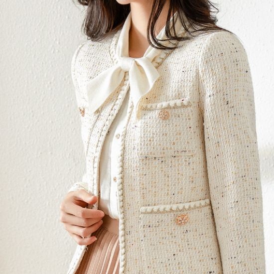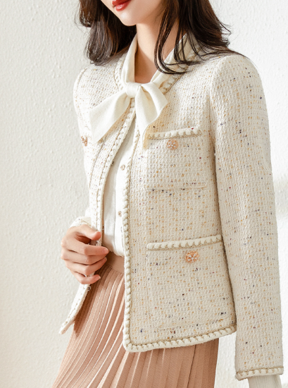 ジャケット レディース アウター 羽織 上着 ノーカラー 長袖 ショート丈 上品 きれいめ エレガント 大人っぽい ホワイト カジュアル お出かけ おしゃれ フォーマル 女性 ファッション ポケット