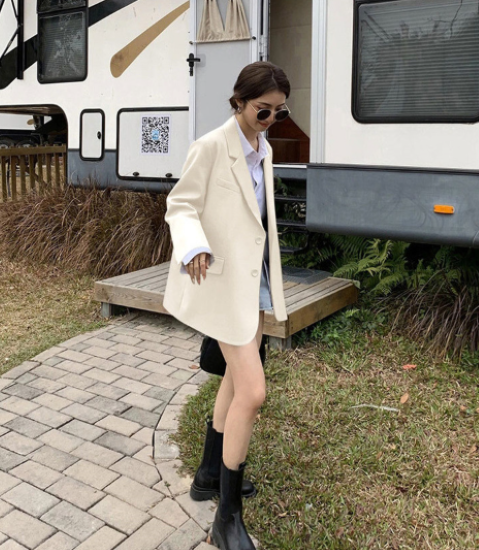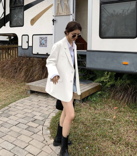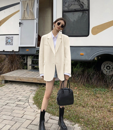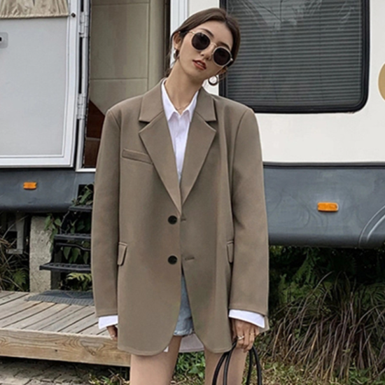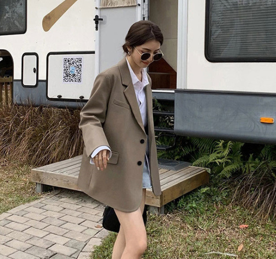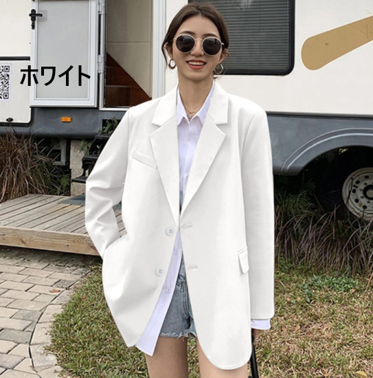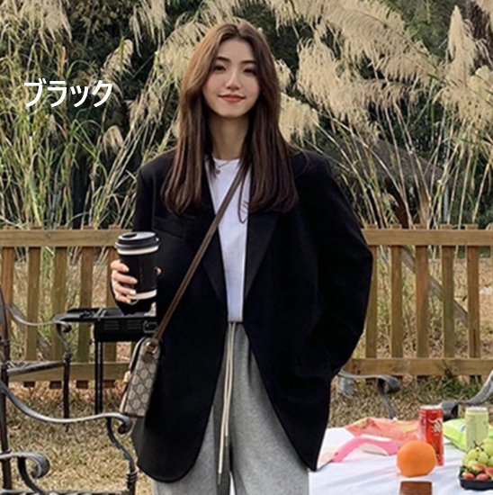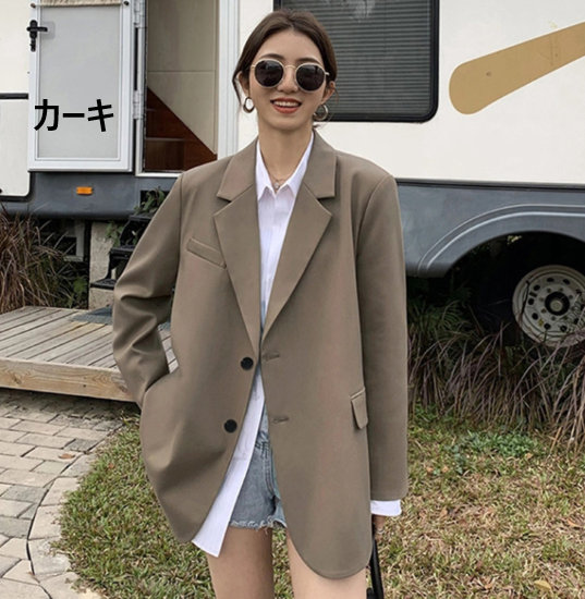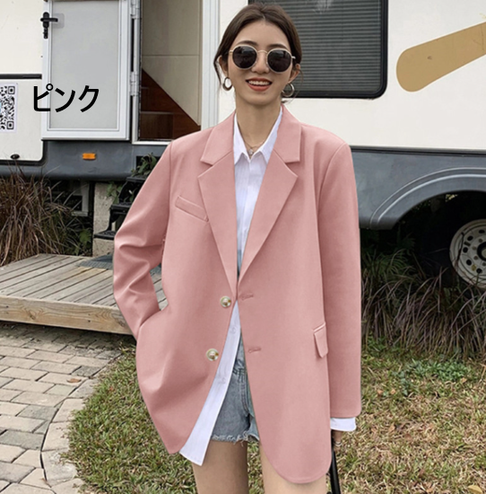 ジャケット レディース アウター 羽織 上着 長袖 スーツジャケット 襟あり フロントボタン ゆったり シンプル 無地 フォーマル スタイリッシュ オフィス きれいめ カジュアル お出かけ おしゃれ