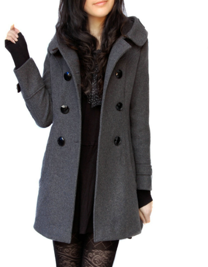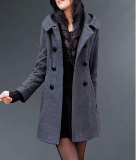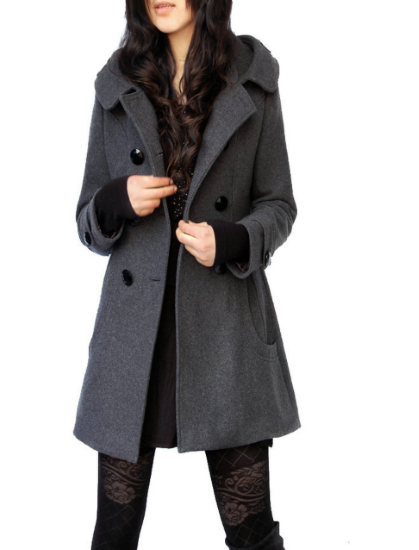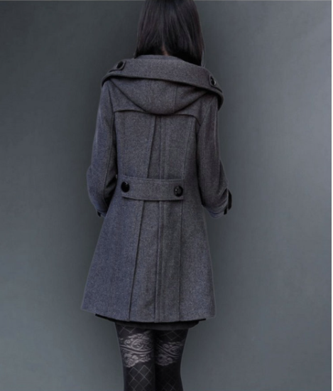 コート レディース アウター 羽織 上着 ミドル丈 ダブルブレスト フロントボタン 長袖 フード付き スタイリッシュ シンプル 無地 カジュアル お出かけ おしゃれ きれいめ 通勤 通学 ファッション