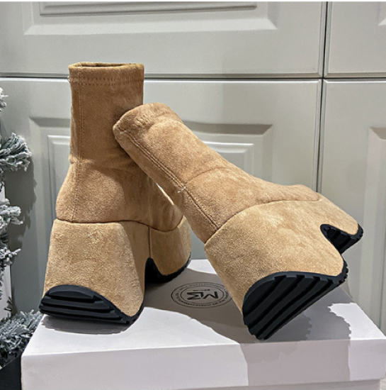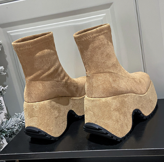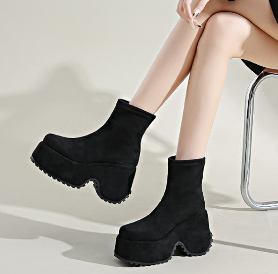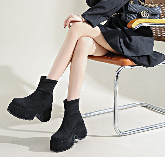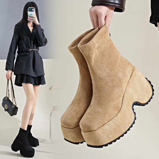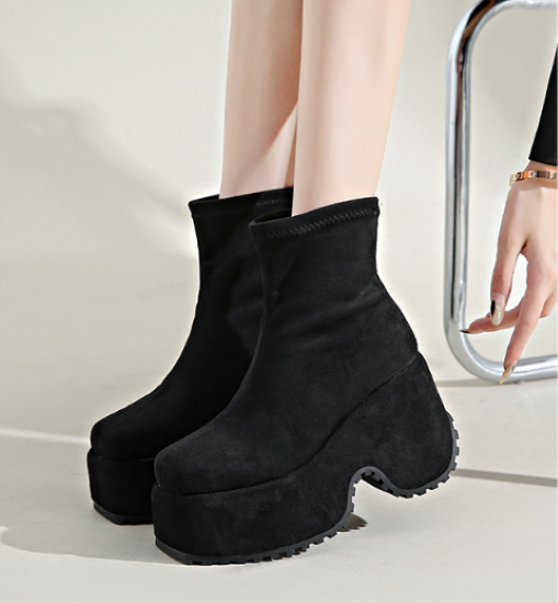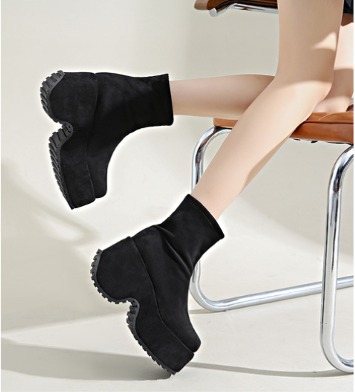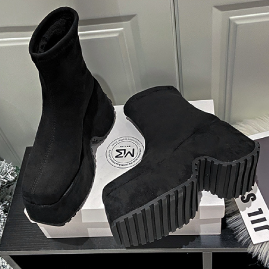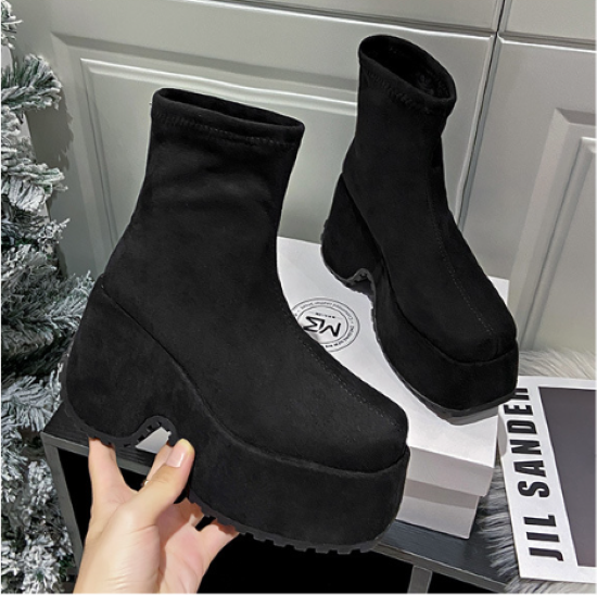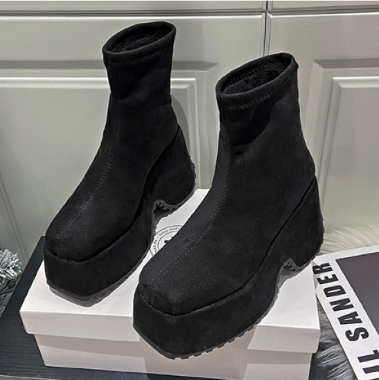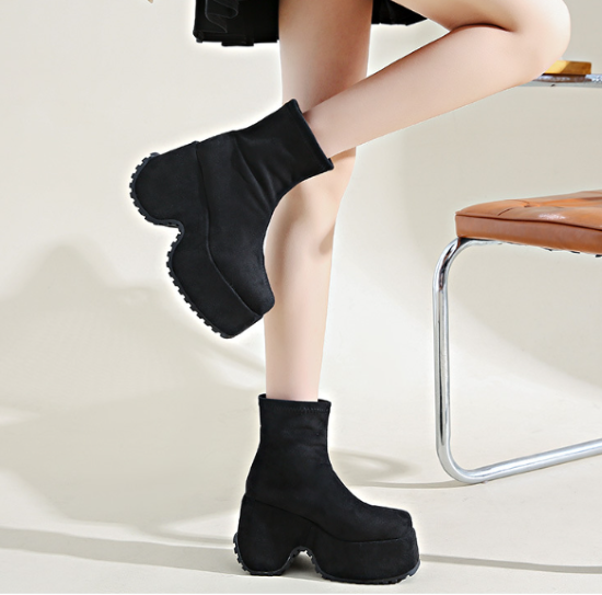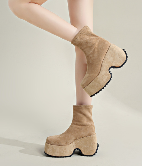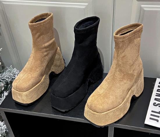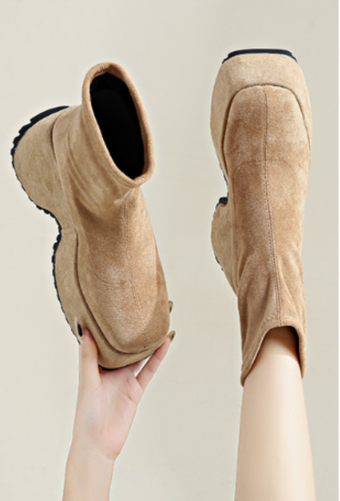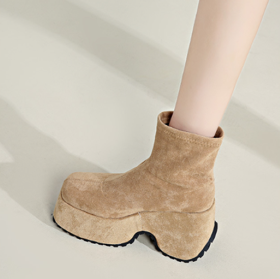 ブーツ レディース 靴 シューズ ショート丈 スクエアトゥ 厚底 美脚 脚長 シンプル 無地 スエード 安定感 カジュアル お出かけ おしゃれ 秋冬 スタイルアップ ボリューム 女性 ファッション