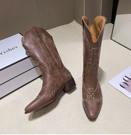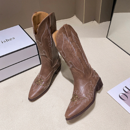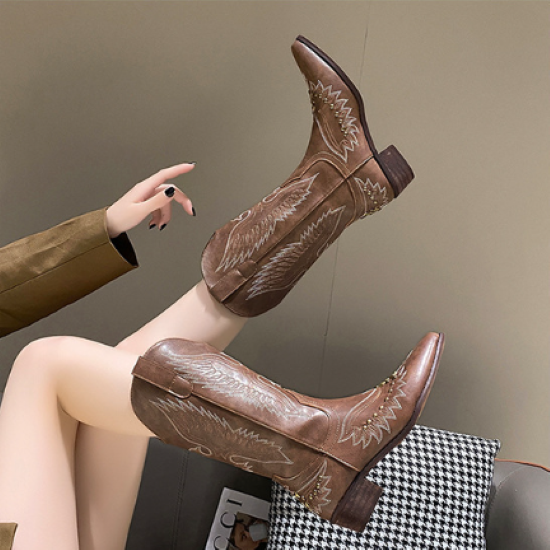 ブーツ レディース 靴 シューズ ミドル丈 ウエスタンブーツ カウボーイ V字 太ヒール ポインテッドトゥ ステッチ 履きやすい 歩きやすい 疲れにくい 美脚 脚長 カジュアル お出かけ おしゃれ