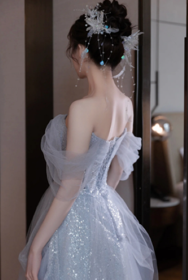演奏会ドレス レディース 結婚式ドレス パーティードレス ロング マキシ丈 オフショルダー ハイウエスト きらきら 華やか オーガンジー ハイウエスト きれいめ エレガント お呼ばれ フォーマル