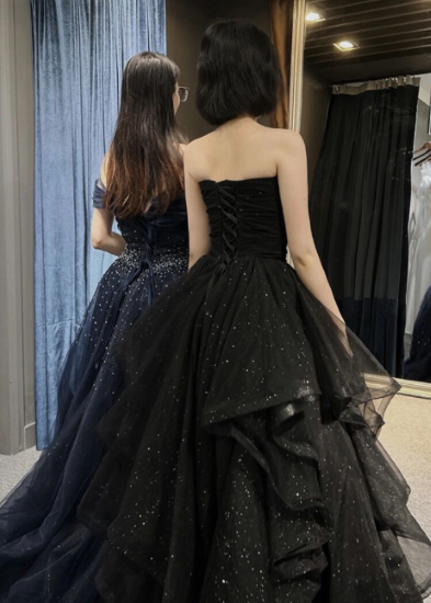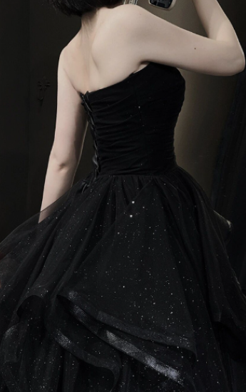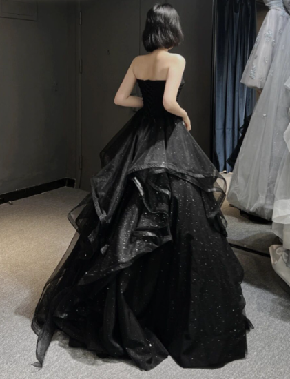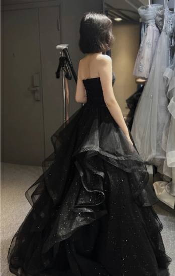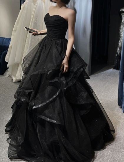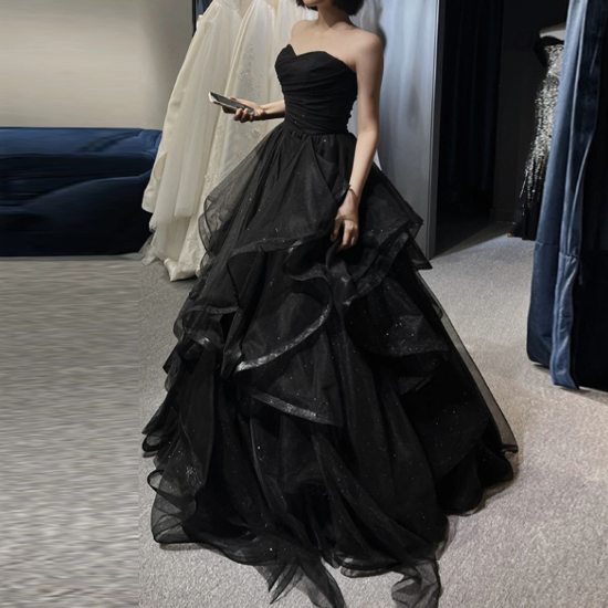 演奏会ドレス レディース 結婚式ドレス パーティードレス ロング ワンピース マキシ丈 黒 ブラック チューブトップ 肩出し 肌見せ フリル ハイウエスト きれいめ エレガント お呼ばれ フォーマル