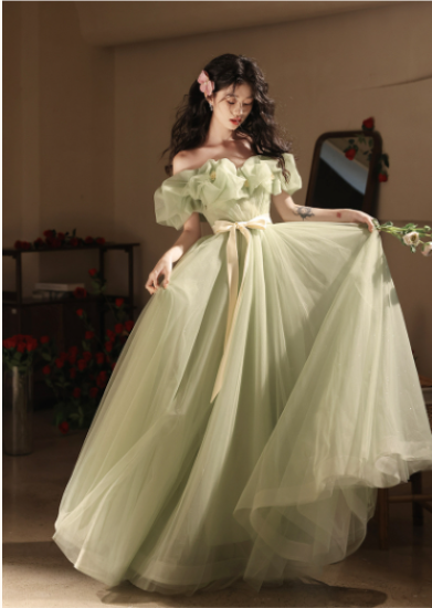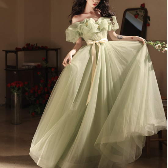 演奏会ドレス レディース 結婚式ドレス ロングドレス パーティー マキシ丈 フリル ハイウエスト ウエストリボン フェミニン Aラインスカート きれいめ エレガント お呼ばれ フォーマル 披露宴 女性