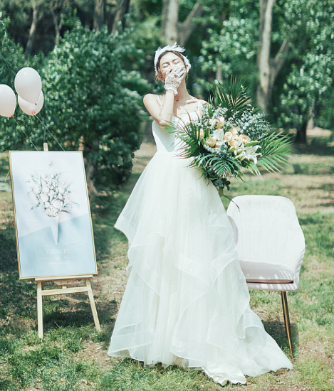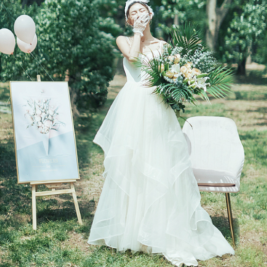 ウエディングドレス レディース 結婚式ドレス ブライダルドレス 花嫁 パーティー 白 ホワイト ノースリーブ ハイウエスト フリルスカート ボリューム きれいめ エレガント 披露宴 フォーマル 女性