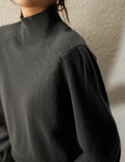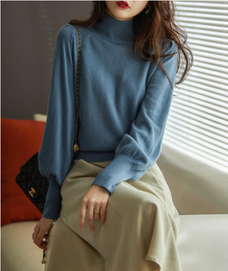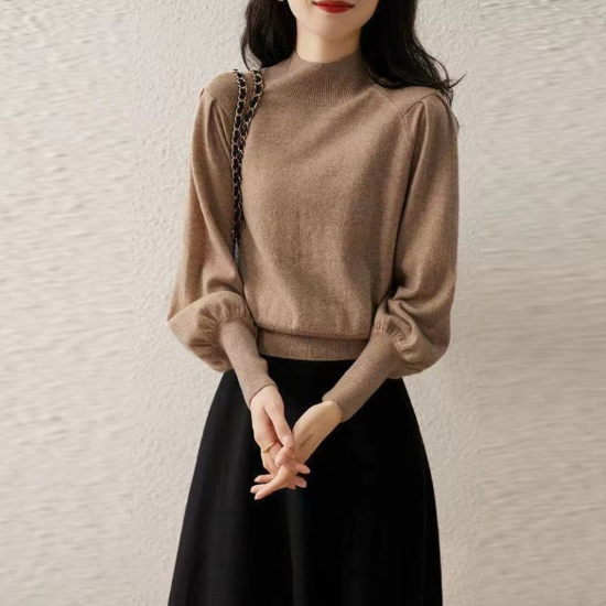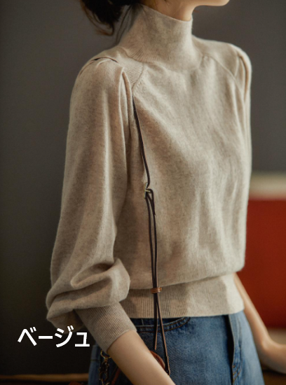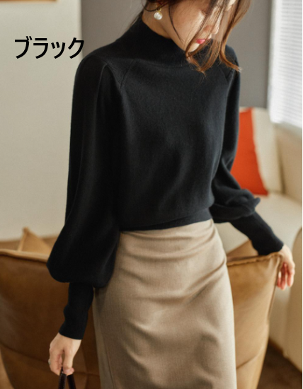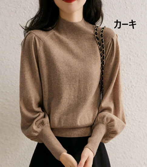 ニットセーター レディース トップス プルオーバー ハーフハイネック 長袖 ボリューム袖 ランタンスリーブ シンプル 無地 カットソー カジュアル お出かけ おしゃれ きれいめ 女性 ファッション