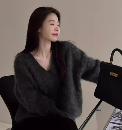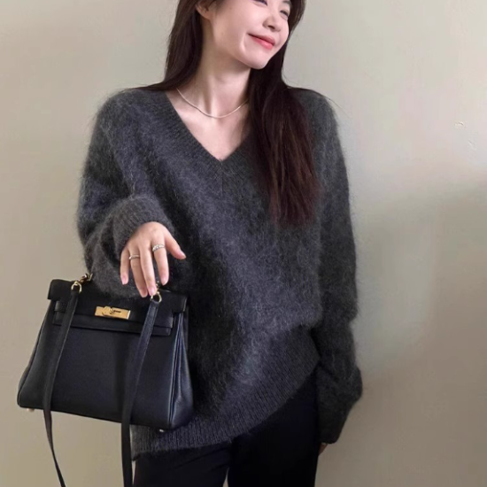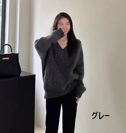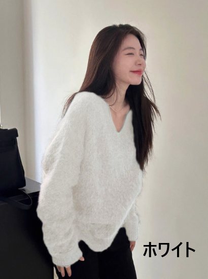 ニットセーター レディース トップス プルオーバー 長袖 起毛 モヘア Vネック ゆったり ルーズ シンプル 無地 ベーシック 定番 カジュアル お出かけ おしゃれ きれいめ 秋冬 女性 ファッション