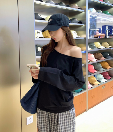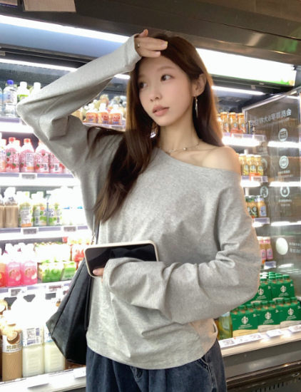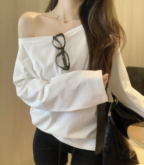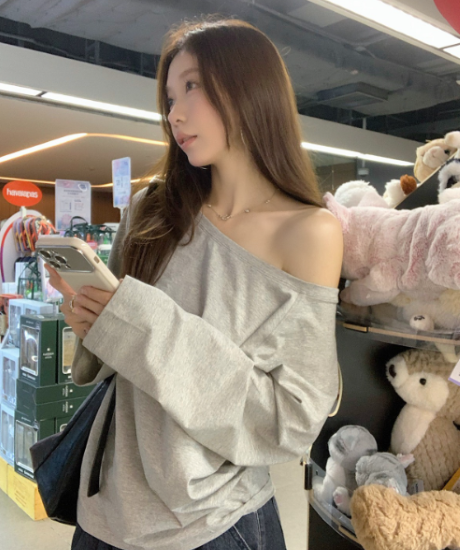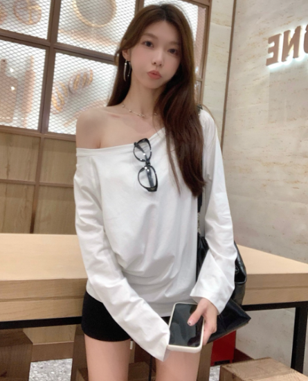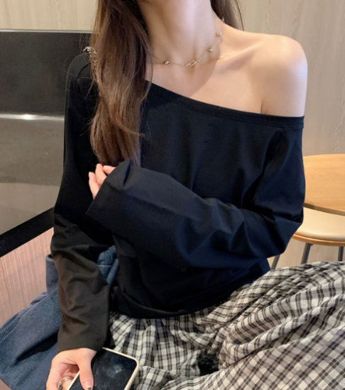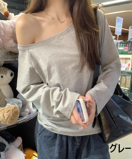 長袖Tシャツ レディース トップス カットソー ロンT オフショルダー ワンショルダー 肩出し 肌見せ セクシー シンプル 無地 プルオーバー ゆったり ルーズ カジュアル お出かけ おしゃれ 女性