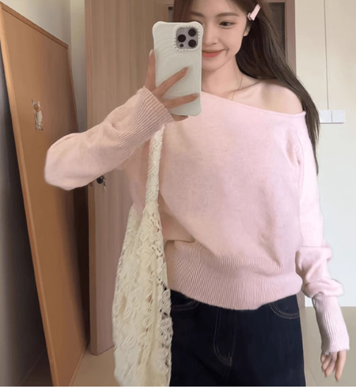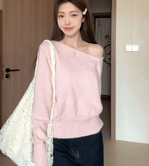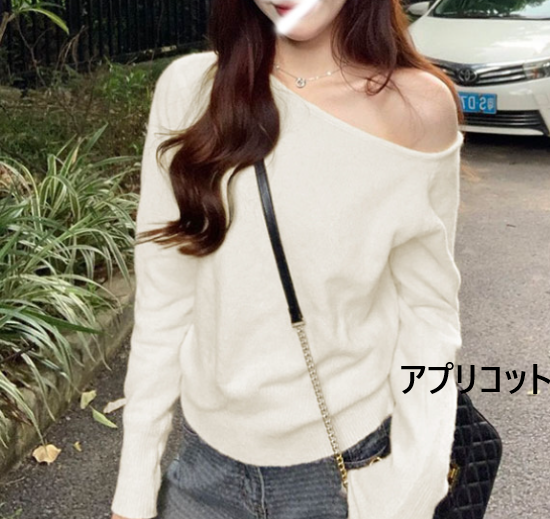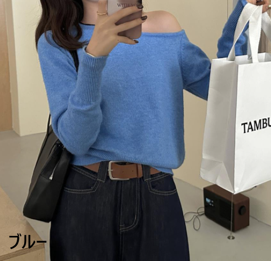 ニットセーター レディース トップス プルオーバー 長袖 ワンショルダー 肩出し 肌見せ シンプル 無地 ゆったり カジュアル お出かけ おしゃれ きれいめ リブ ルーズ 女性 ファッション デイリー