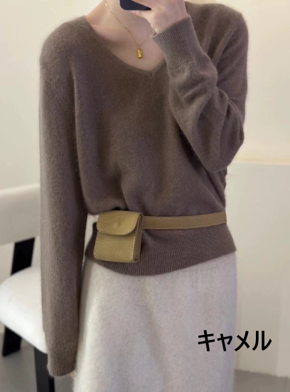 ニットセーター レディース トップス プルオーバー 長袖 リブ Vネック シンプル 無地 薄手 インナー ゆったり 着回し カジュアル お出かけ おしゃれ きれいめ ベーシック 定番 ファッション