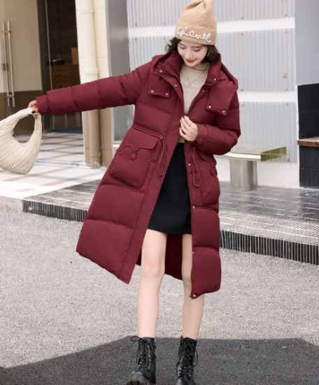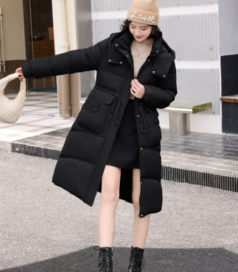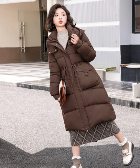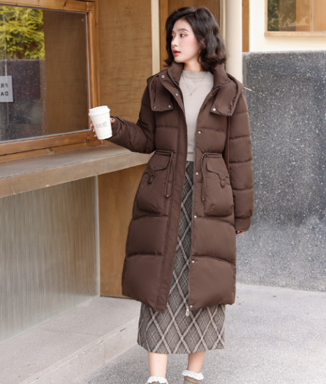 コート レディース アウター 羽織 ミドル丈 ダウンコート 長袖 フロントジッパー フード付き ウエストドローストリング ポケット 防寒 防風 暖かい 冬 カジュアル お出かけ おしゃれ きれいめ