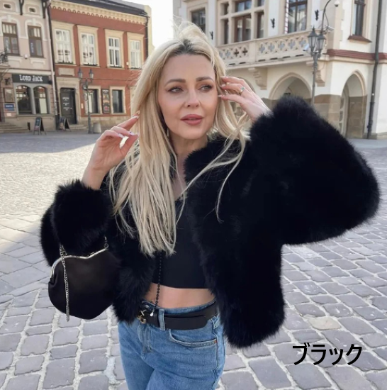 ジャケット レディース アウター 羽織 ファー ふわふわ もこもこ 暖かい ショート丈 クロップド丈 スタイルアップ 長袖 ノーカラー カジュアル お出かけ おしゃれ ゴージャス きれいめ ボリューム