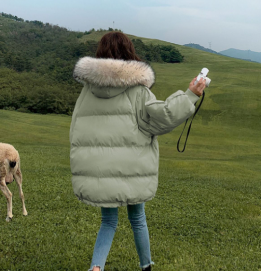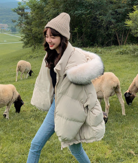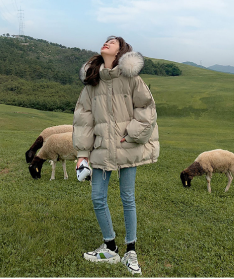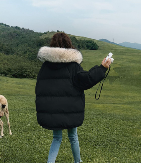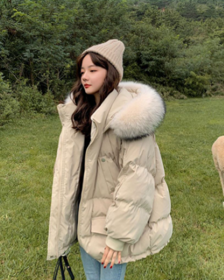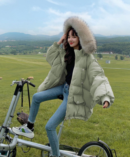 ジャケット レディース アウター 羽織 ダウンジャケット フード付き ファー スタンドカラー 防寒 防風 暖かい 冬 ゆったり 長袖 フロントジッパー ボリューム カジュアル シンプル お出かけ