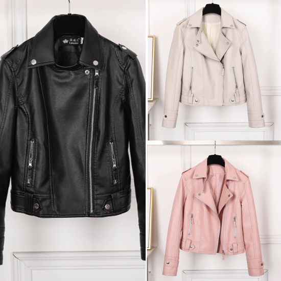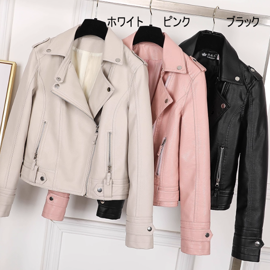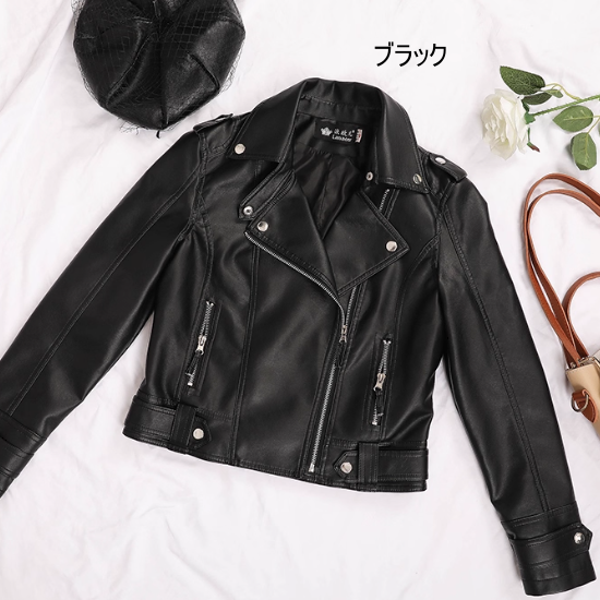 ライダースジャケット レディースファッション アウター レザージャケット ショートジャケット フロントジッパー 袖ベルト カジュアル お洒落 定番人気 大人カッコいい トレンド 韓国風 20代 30代