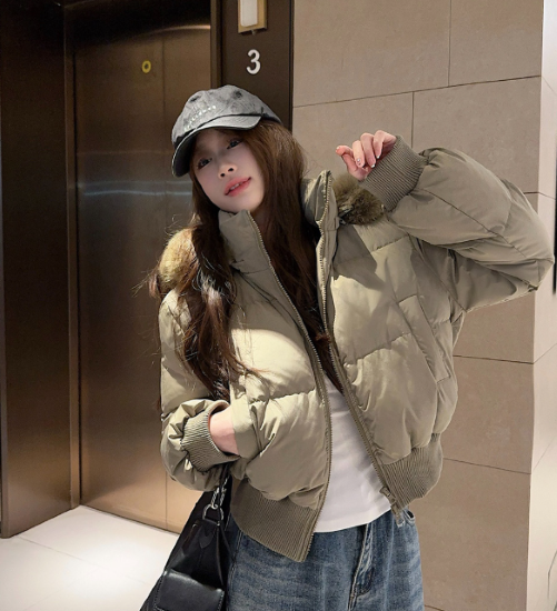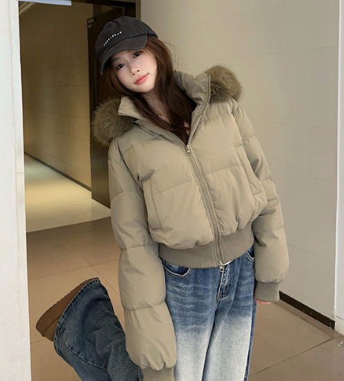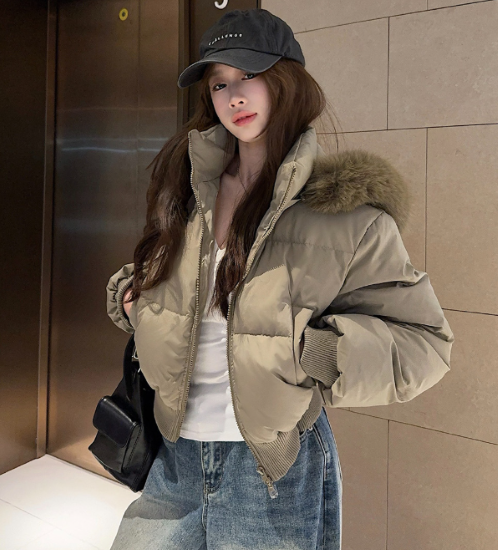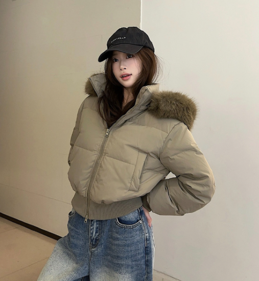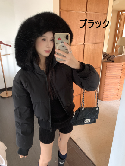 ジャケット レディース アウター 羽織 ショート丈 クロップド丈 フード付き ファー スタイルアップ 長袖 ダウンジャケット 防寒 防風 冬 温かい カジュアル お出かけ おしゃれ シンプル 無地