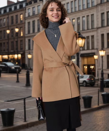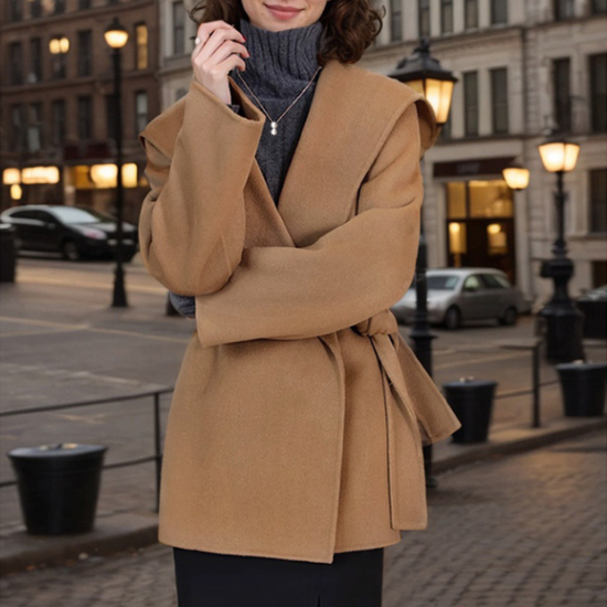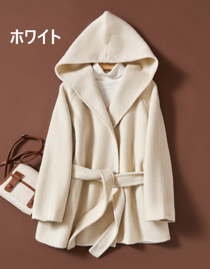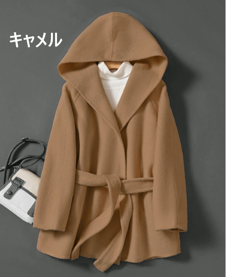 コート レディース アウター 羽織 フード付き ウール ラップコート ウエストベルト シンプル 無地 防寒 冬 長袖 ゆったり カジュアル お出かけ おしゃれ きれいめ 女性 ファッション デイリー