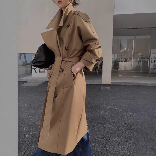 コート レディース アウター 羽織 トレンチコート ロング丈 長袖 襟あり フロントボタン ダブルブレスト ウエストベルト スタイリッシュ 通勤 通学 カジュアル お出かけ おしゃれ きれいめ 女性