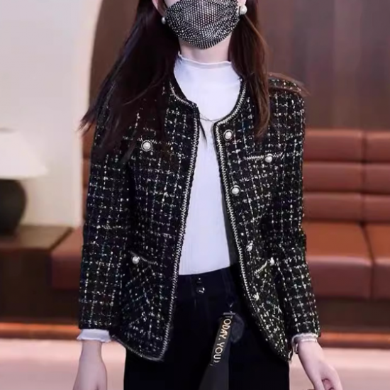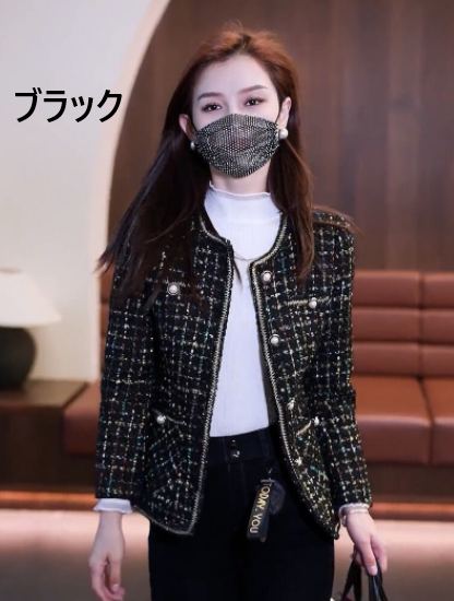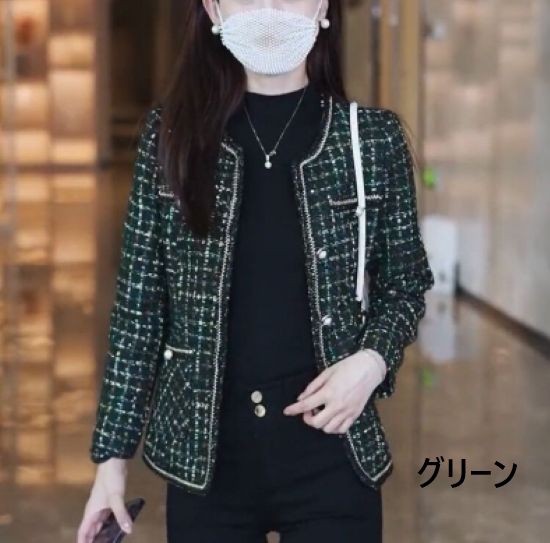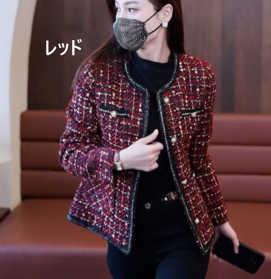 ジャケット レディース アウター 羽織 ツイードジャケット ノーカラー 長袖 フロントボタン ショート丈 クラシカル レトロ 大人っぽい 上品 カジュアル お出かけ おしゃれ きれいめ エレガント
