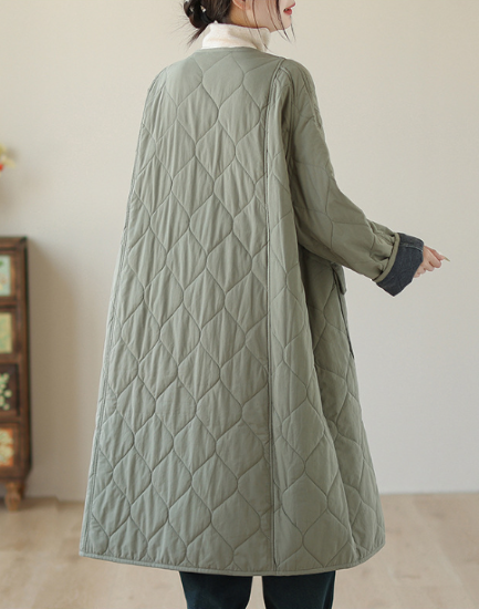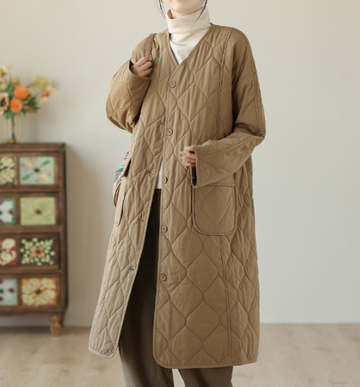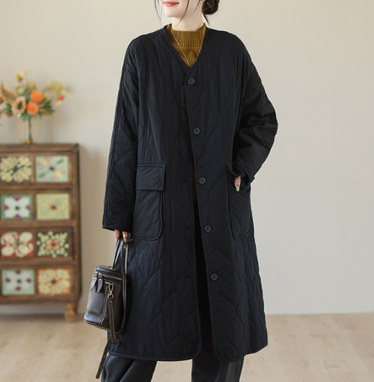 コート レディース アウター 羽織 ロング丈 キルティング ステッチ 長袖 ノーカラー Vネック シンプル 無地 フロントボタン カジュアル お出かけ おしゃれ きれいめ 女性 ファッション 秋冬