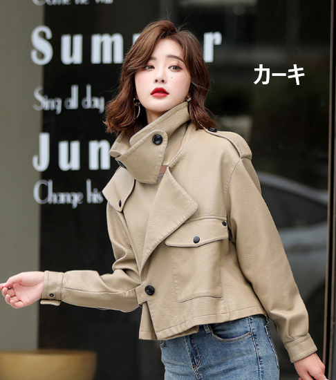 ジャケット レディース アウター 羽織 ライダースジャケット 長袖 襟あり アシンメトリー フェイクレザー クール かっこいい スタイリッシュ ショート丈 カジュアル お出かけ おしゃれ ファッション