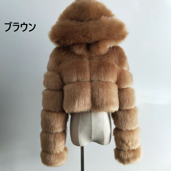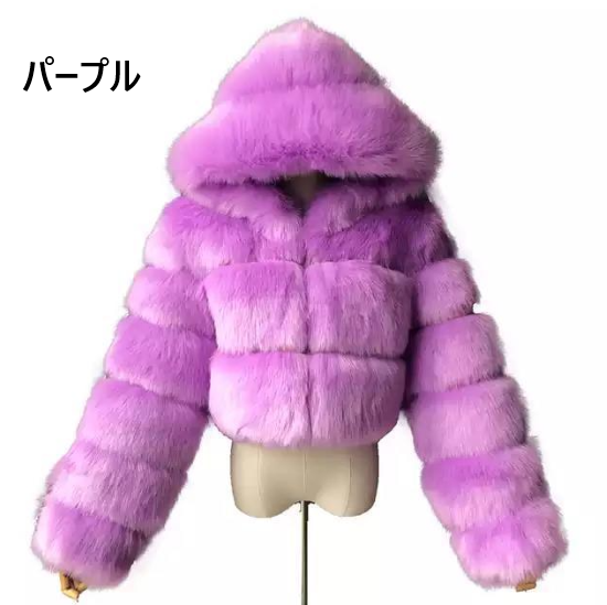 ジャケット レディース アウター 羽織 フェイクファー ふわふわ もこもこ ボリューム 長袖 フード付き ショート丈 クロップド丈 スタイルアップ フロントジッパー 大きいサイズ カジュアル 女性