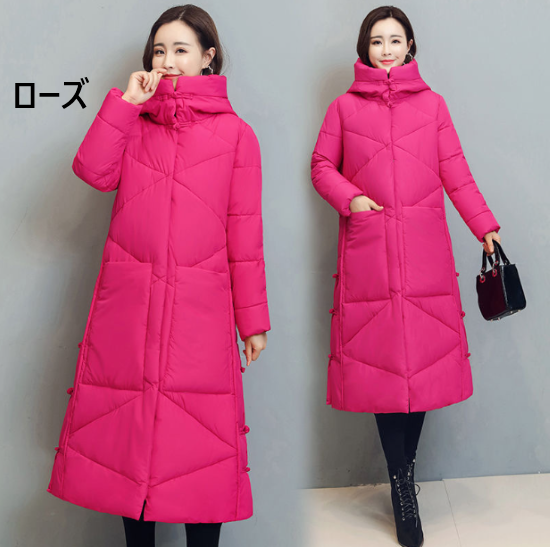 コート レディース アウター 羽織 上着 長袖 ロング丈 ダウンコート フード付き シンプル 無地 防寒 防風 暖かい 冬 ポケット 通勤 通学 カジュアル お出かけ おしゃれ きれいめ ファッション