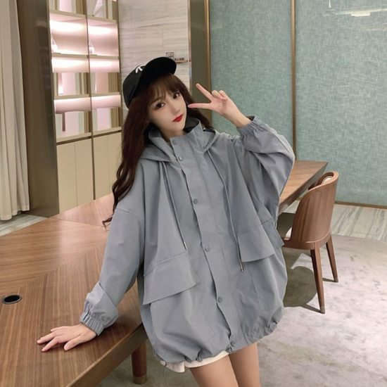 ジャケット レディース アウター 羽織 上着 ウインドブレーカー ゆったり フード付き 長袖 薄手 ライトアウター シンプル 無地 フロントジッパー カジュアル お出かけ おしゃれ ファッション