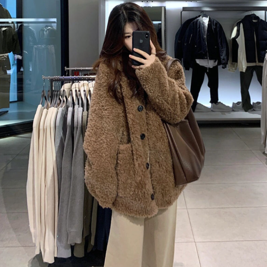 ジャケット レディース アウター 羽織 ボアジャケット 長袖 ノーカラー フロントボタン ゆったり もこもこ 暖かい カーディガン ブラック ブラウン 黒 茶 カジュアル お出かけ おしゃれ 女性