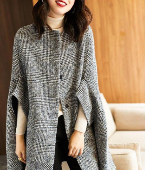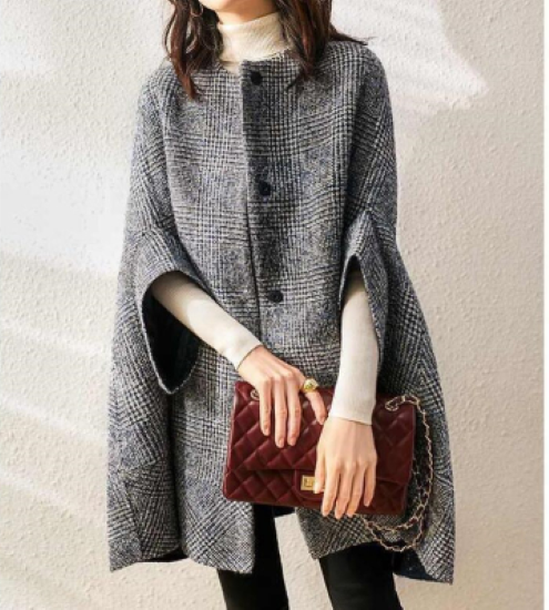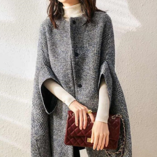 コート レディース アウター 羽織 上着 ポンチョ ケープ マント Aライン ノーカラー フロントボタン 七分袖 きれいめ エレガント 大人っぽい カジュアル お出かけ おしゃれ 女性 ファッション