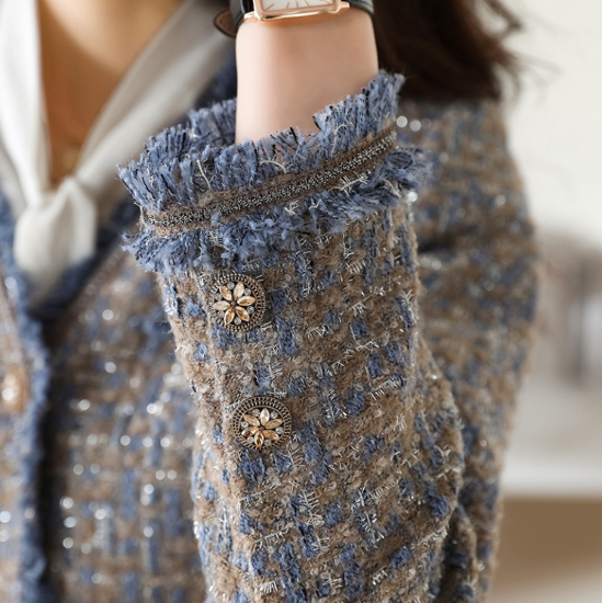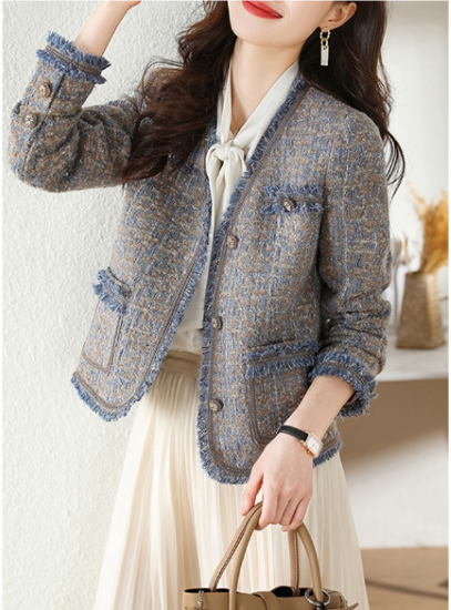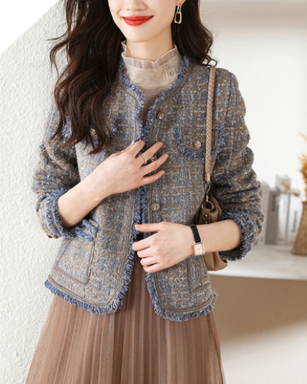 ジャケット レディース アウター 羽織 上着 ショート丈 ノーカラー フロントボタン フリンジ 長袖 ツイードジャケット カジュアル お出かけ おしゃれ きれいめ 大人っぽい 上品 ファッション