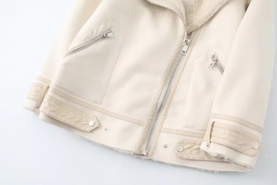 ジャケット レディース アウター 羽織 上着 ライダースジャケット スエード ボア ムートン 襟あり フロントジッパー アシンメトリー 長袖 防寒 防風 暖かい カジュアル お出かけ おしゃれ 女性