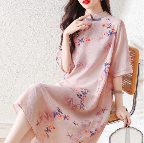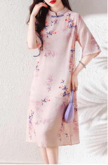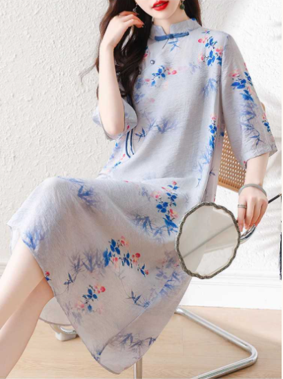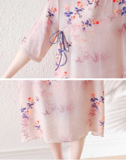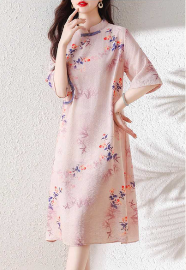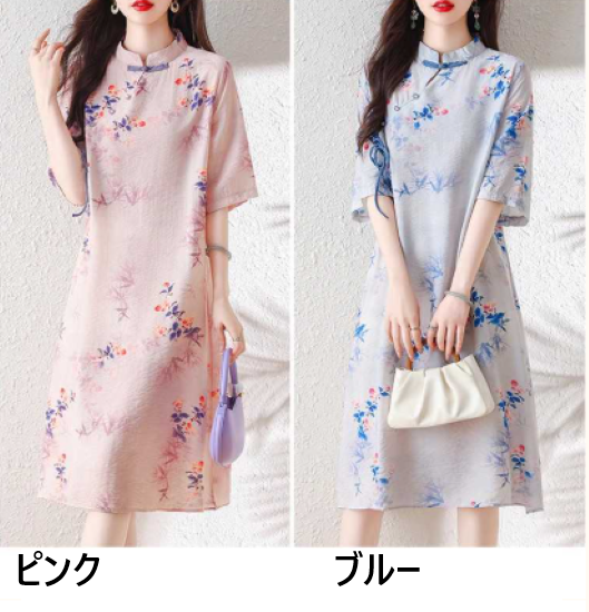 ワンピース レディース 膝丈ワンピース チャイナドレス コットン 綿 半袖 スタンドカラー チャイナカラー 花柄 フラワー カジュアル お出かけ おしゃれ きれいめ フローラル女性 ファッション