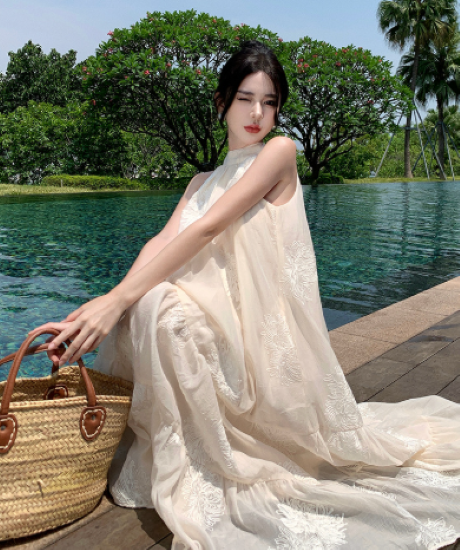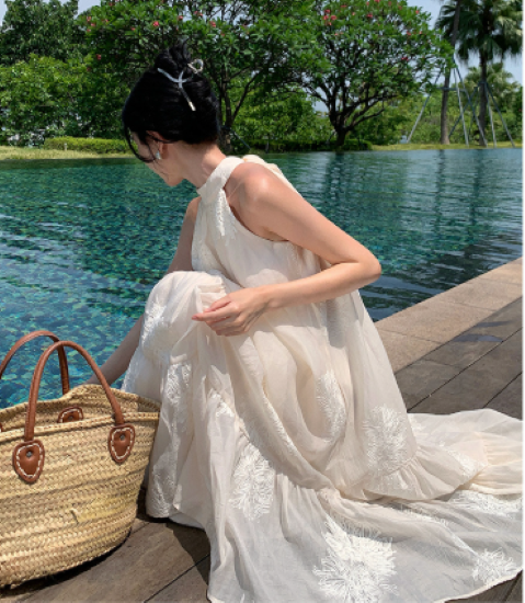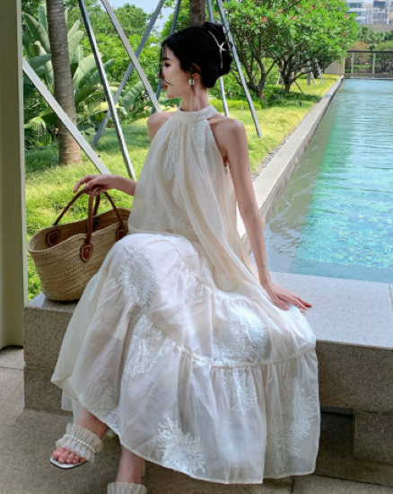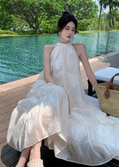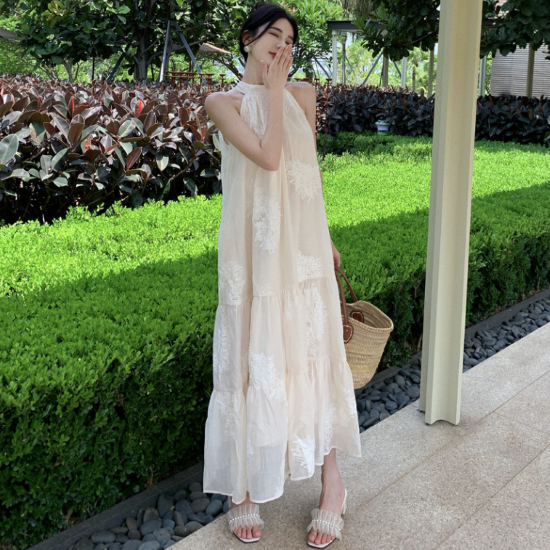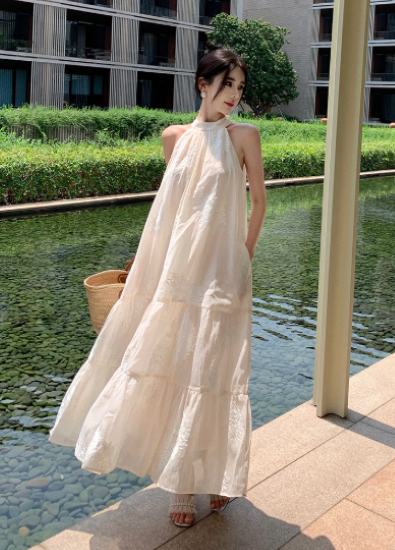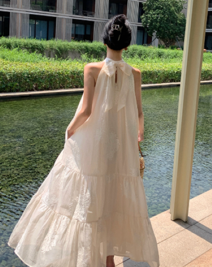 ワンピース レディース ロング丈 マキシ丈 リゾートワンピース ノースリーブ バックリボン バカンス ゆったり 体型カバー カジュアル お出かけ おしゃれ 女性 ファッション きれいめ エレガント