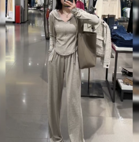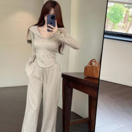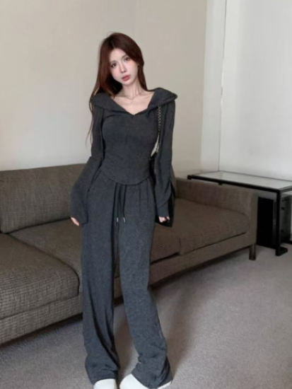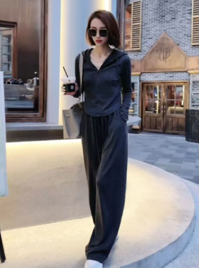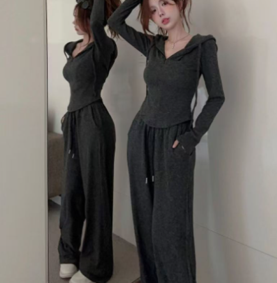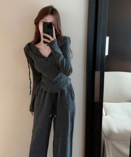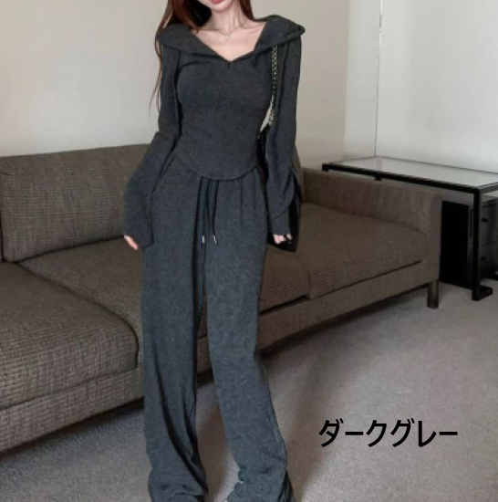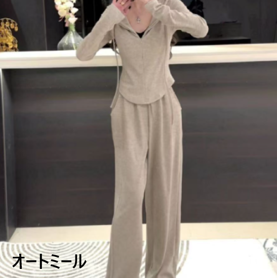 セットアップ レディース 上下セット 2点 ツーピース フード付き 長袖 スウェット ジップアップ パーカー ショート丈 ワイドレッグパンツ シンプル 無地 カジュアル ルームウェア シンプル 無地