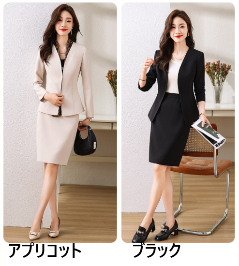 セットアップ レディース 上下セット 2点 ツーピース スーツ ノーカラージャケット 長袖 膝丈スカート シンプル 無地 きれいめ エレガント フォーマル OL 通勤 スタイリッシュ オフィス 女性