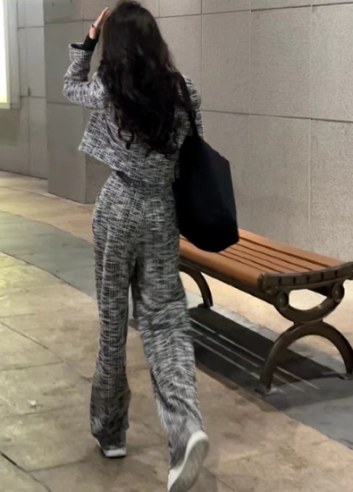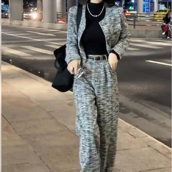 セットアップ レディース 上下セット 2点セット ツーピース ノーカラージャケット ショート丈 長袖 ワイドパンツ ハイウエスト スーツ カジュアル お出かけ おしゃれ きれいめ スタイリッシュ