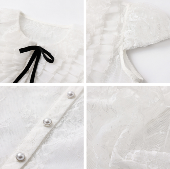 ブラウス レディース トップス シフォン フロントボタン フリル リボン コントラストカラー バイカラー きれいめ エレガント ホワイト フレンチスリーブ お呼ばれ フォーマル カジュアル お出かけ