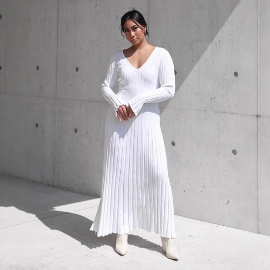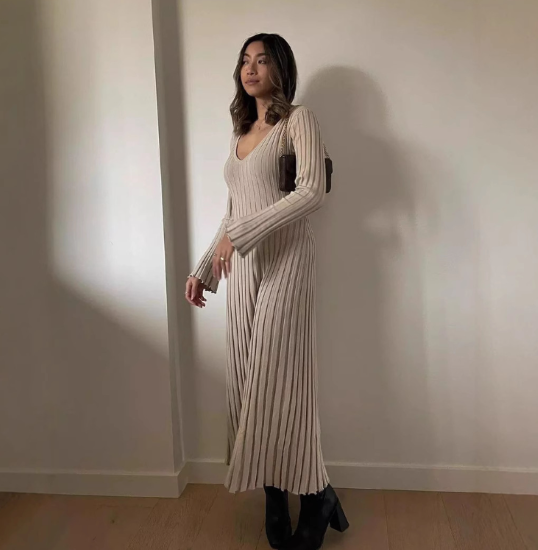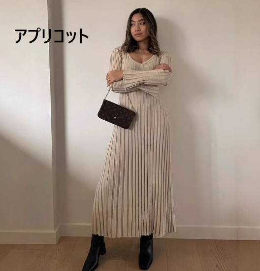 ワンピース レディース ロング丈 ニットワンピース 長袖 リブニット シンプル 無地 Vネック ハイウエスト マキシ丈 カジュアル お出かけ おしゃれ きれいめ 女性 ファッション 大きいサイズ