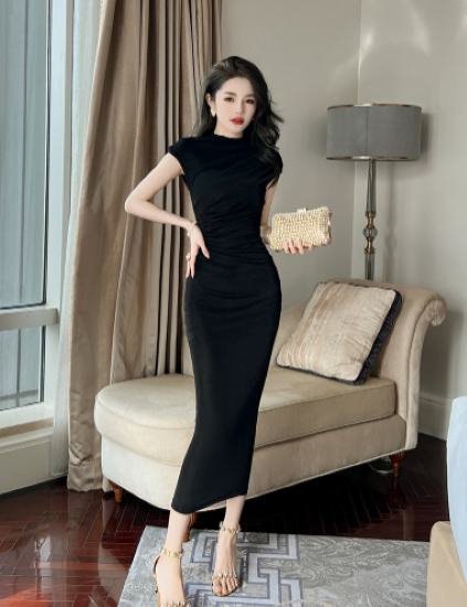 パーティードレス レディース 結婚式ドレス 演奏会ドレス スリムフィット タイト フレンチスリーブ 大人っぽい ハイウエスト きれいめ エレガント お呼ばれ フォーマル 女性 ファッション シンプル