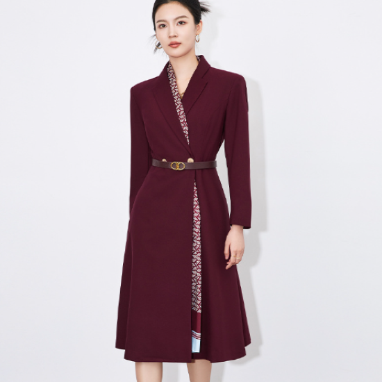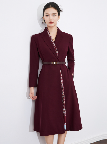 ワンピース レディース ミドル丈 膝丈 長袖 襟あり スーツ襟 ハイウエスト Aラインスカート ベルト付き 上品 大人っぽい きれいめ エレガント お呼ばれ フォーマル パーティー オフィス OL