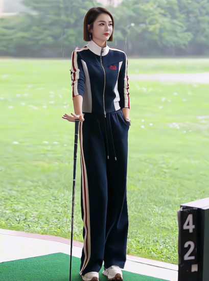 セットアップ レディース 上下セット ツーピース 2点 ジャージ ゴルフウェア スポーティー 長袖 スタンドカラー フロントジッパー スウェット カジュアル ルームウェア 女性 ファッション デイリー