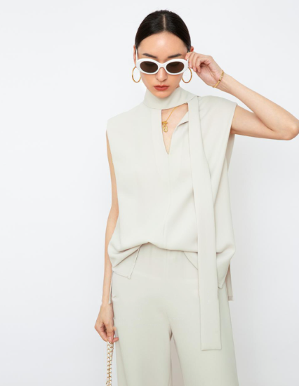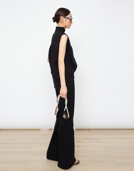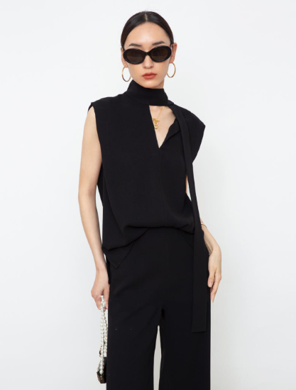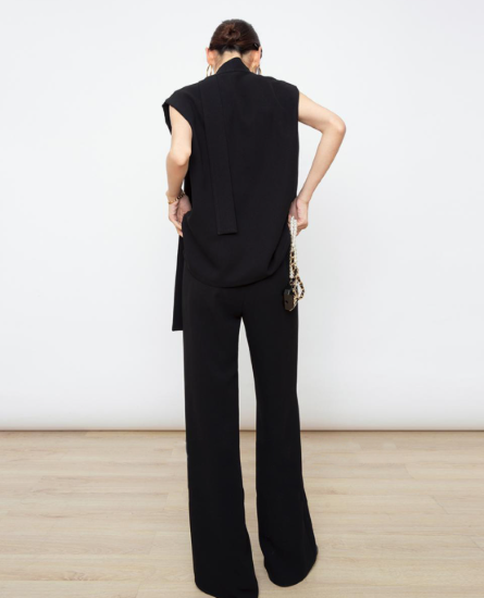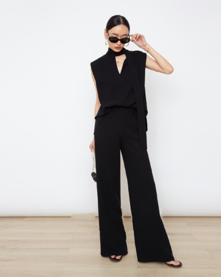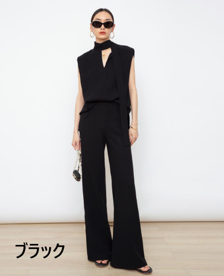 セットアップ レディース 上下セット ツーピース 2点 ノースリーブ Vネック ワイドパンツ シンプル 無地 スタイリッシュ お出かけ おしゃれ きれいめ フォーマル 御呼ばれ 女性 ファッション