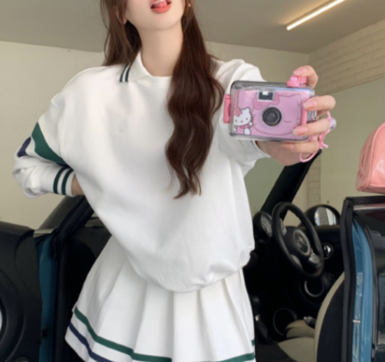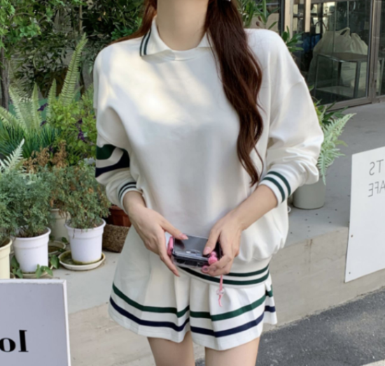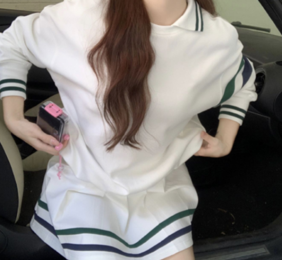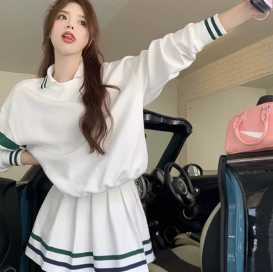 セットアップ レディース 上下セット 2点 ツーピース プルオーバー 長袖 トレーナー ポロシャツ ミニスカート プリーツスカート カジュアル スポーティー ゴルフウェア お出かけ おしゃれ 女性