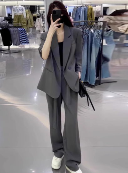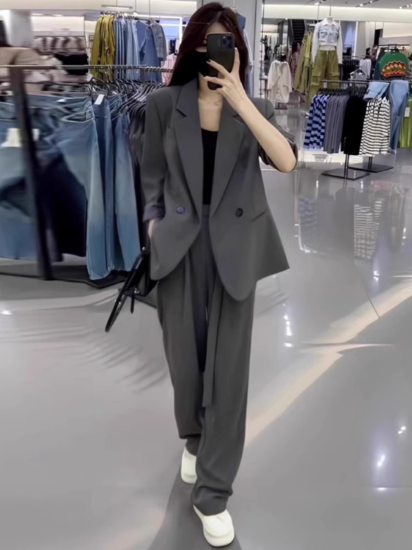 セットアップ レディース 上下セット ツーピース 2点 ジャケット スーツ襟 ロングパンツ パンツスーツ ゆったり スタイリッシュ シンプル 無地 ベーシック 定番 オフィス 通勤 OL フォーマル