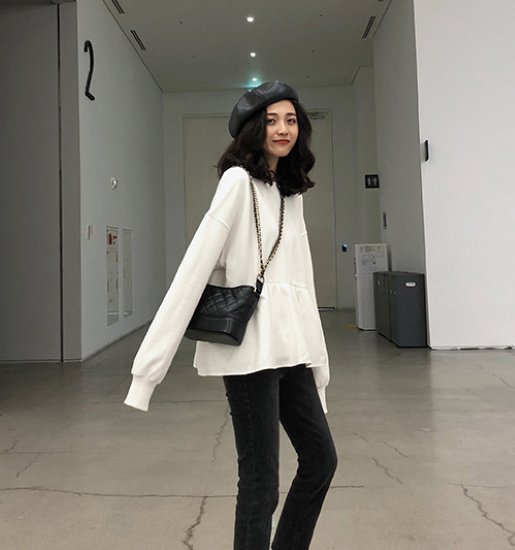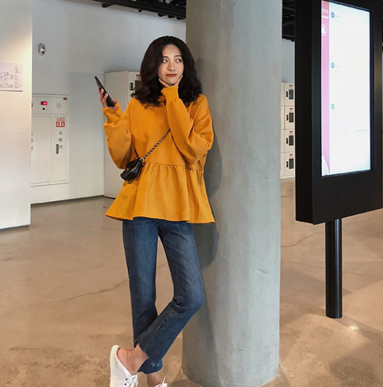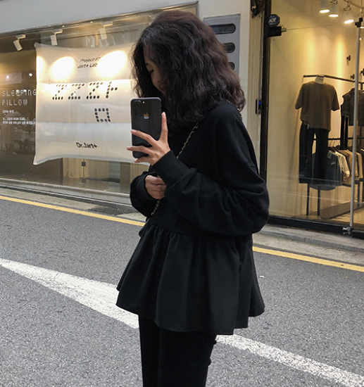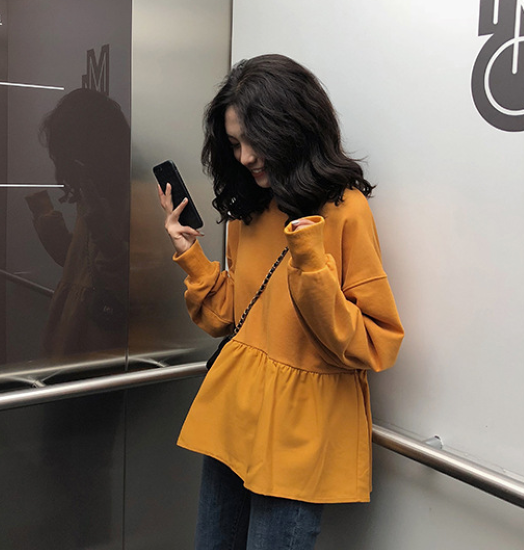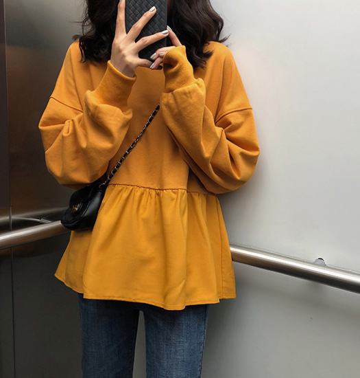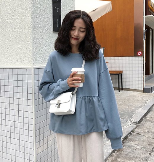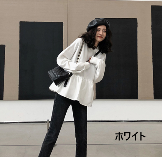 トレーナー レディース トップス プルオーバー 長袖 ラウンドネック 切り替え ペプラム カットソー シンプル 無地 ゆったり カジュアル お出かけ おしゃれ 体型カバー 大きいサイズ ファッション