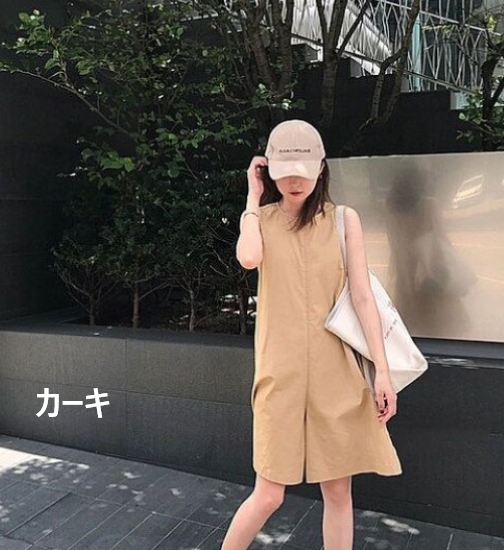 オールインワン レディース ジャンプスーツ サロペット ショートパンツ ノースリーブ ラウンドネック シンプル 無地 夏 ナチュラル カジュアル お出かけ おしゃれ ゆったり 女性 ファッション